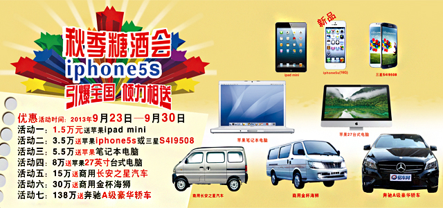 風雨同路、感恩有您!秋季糖酒會超值優(yōu)惠活動今天圓滿結(jié)束,iphone5S、商務汽車全國傾力相送盛況空前熱烈、引爆全國搶購潮!活動禮品將于國慶后由專人聯(lián)系配送,感謝所有新老客戶的支持與信賴!唐人福全體同仁祝大家國慶節(jié)快樂!全國免費咨詢4008378887【唐人?!?nbsp;